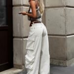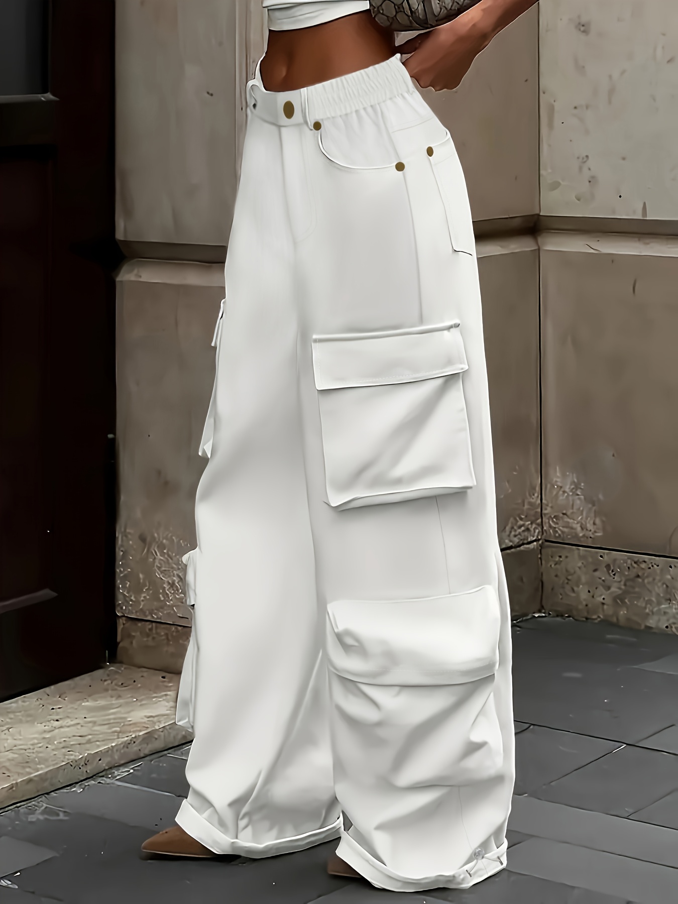Calças Cargo Femininas – Calças de Trabalho com Cintura Elástica e Múltiplos Bolsos Utilitários, Design Sem Cinto, Calças Formais e para o Dia a Dia para Mulheres em Todas as Estações