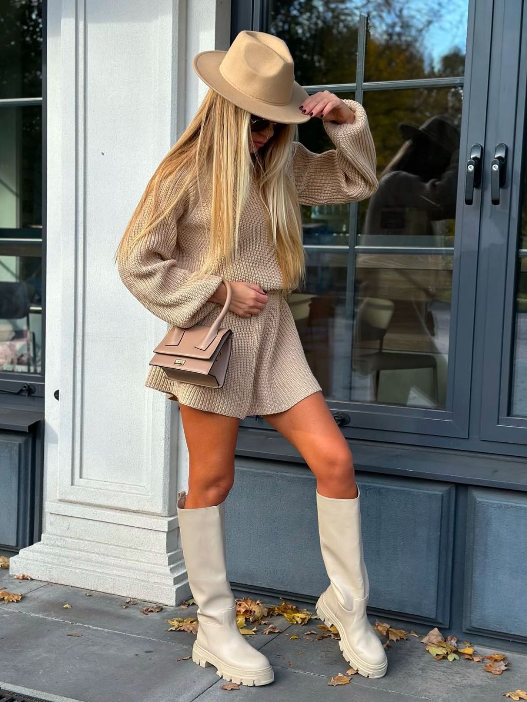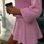 Conjunto Tricot Feminino Saia Godê e Blusa Manga Bufante Moda Blogueira Gringa Outono Inverno