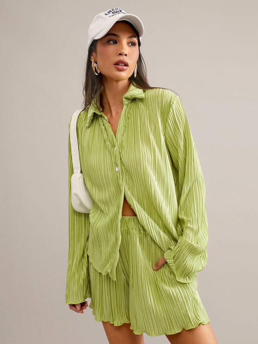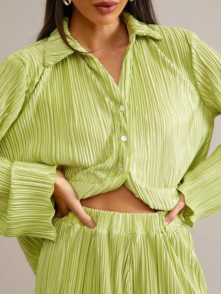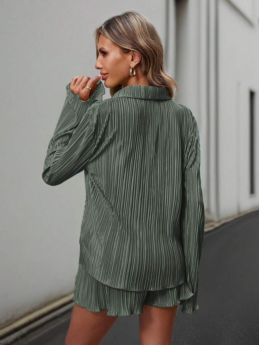 SHEIN Essnce Conjunto Feminino De Duas Peças Plissado Em Cor Sólida