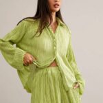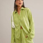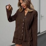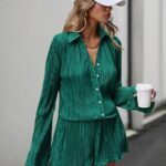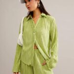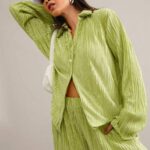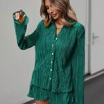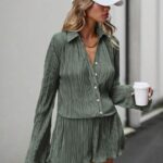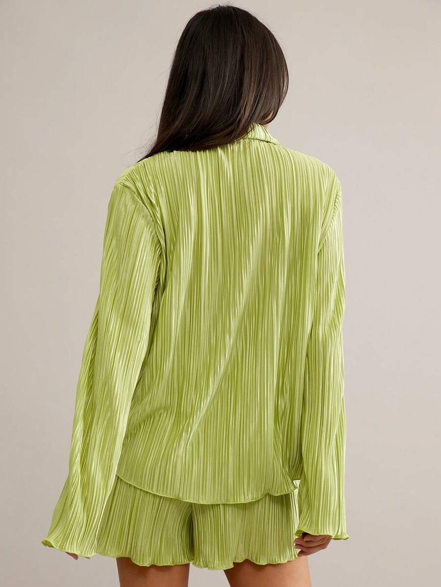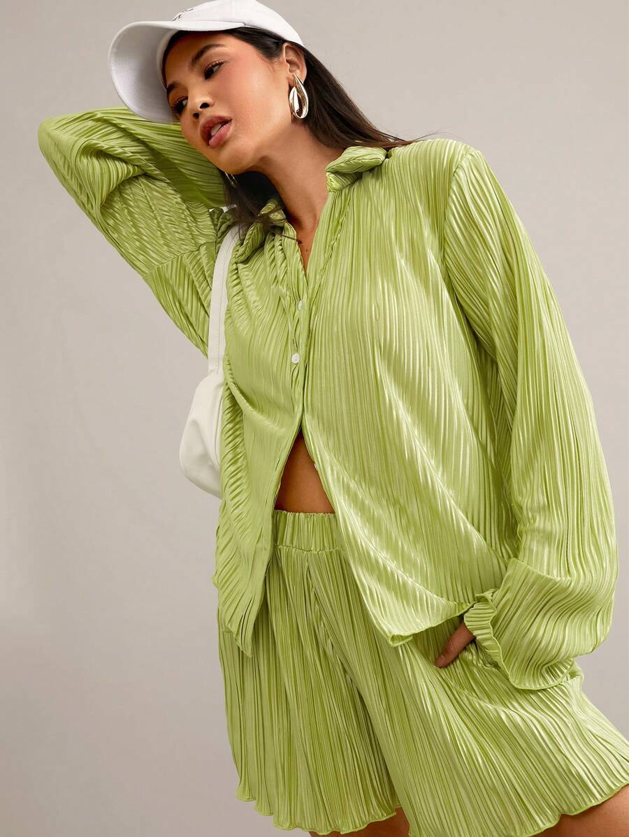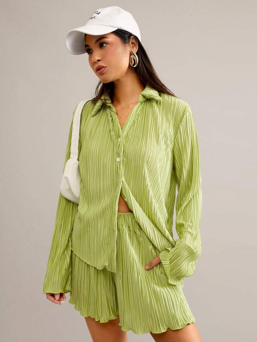 SHEIN Essnce Conjunto Feminino De Duas Peças Plissado Em Cor Sólida