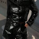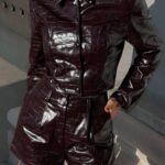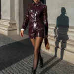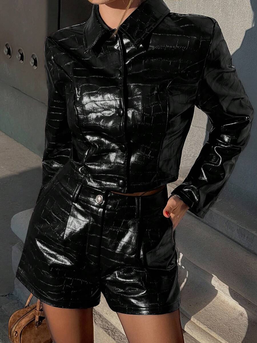 Siren Gaze Jaqueta Casual Curta Feminina em PU Gravado para Outono/Inverno